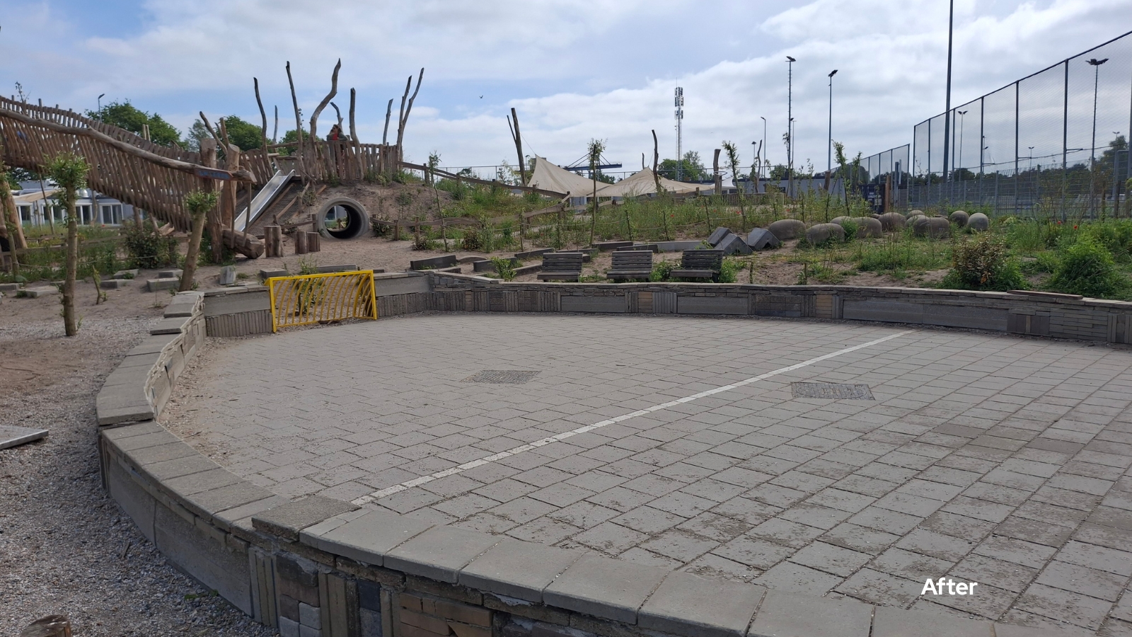 We zijn het project gestart met het verwijderen van een hekwerk en een oud gravelveld met daarop dug-outs. Vervolgens is het bestaande riool verwijderd om daarna een compleet nieuw systeem aan te leggen. Daarbij is zowel een vuilwaterriool als een hemelwaterriool geïnstalleerd om de afwatering optimaal te scheiden en af te voeren.